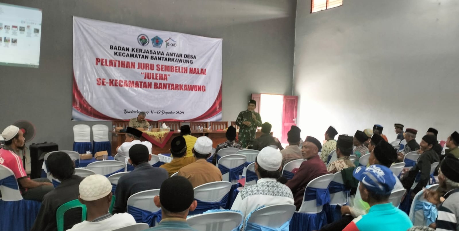 Brebes – Demi memastikan daging yang dikonsumsi masyarakat benar-benar halal dan higienis, Badan Kerjasama Antar Desa (BKAD) Kecamatan Bantarkawung bekerjasama dengan Dewan Pimpinan Daerah Juru Sembelih Halal Kabupaten Brebes menggelar Pelatihan Juru Sembelih Halal (Juleha) yang berlangsung di GOR Desa Pangebatan, Kecamatan Bantarkawung, Brebes, Jawa Tengah. Selasa (10/12/2024).