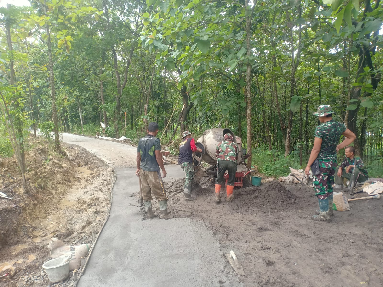Pantauan di lokasi menunjukkan personel dari Kodim 0713/Brebes bahu-membahu bersama warga melakukan pengecoran. Cuaca yang cukup mendukung dalam beberapa hari terakhir dimanfaatkan secara maksimal untuk mengejar target volume pekerjaan.