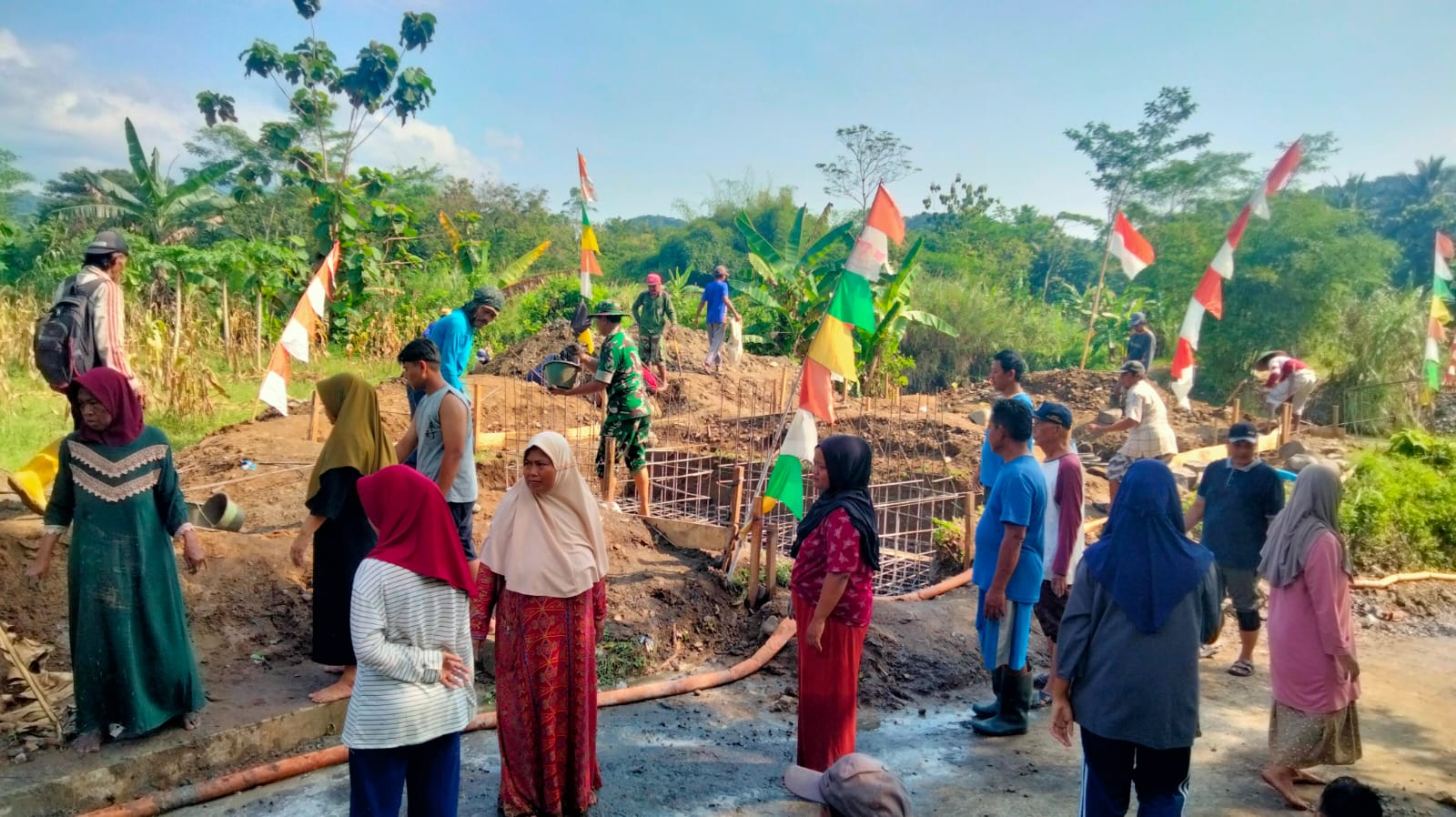 Babinsa Desa Bangbayang, Pelda Aris, turut hadir dan terlibat langsung dalam kegiatan tersebut. Ia tidak hanya mengawasi jalannya pekerjaan, tetapi juga ikut serta dalam proses estafet pengecoran bersama warga, sekaligus memberikan motivasi agar semangat kebersamaan terus terjaga.