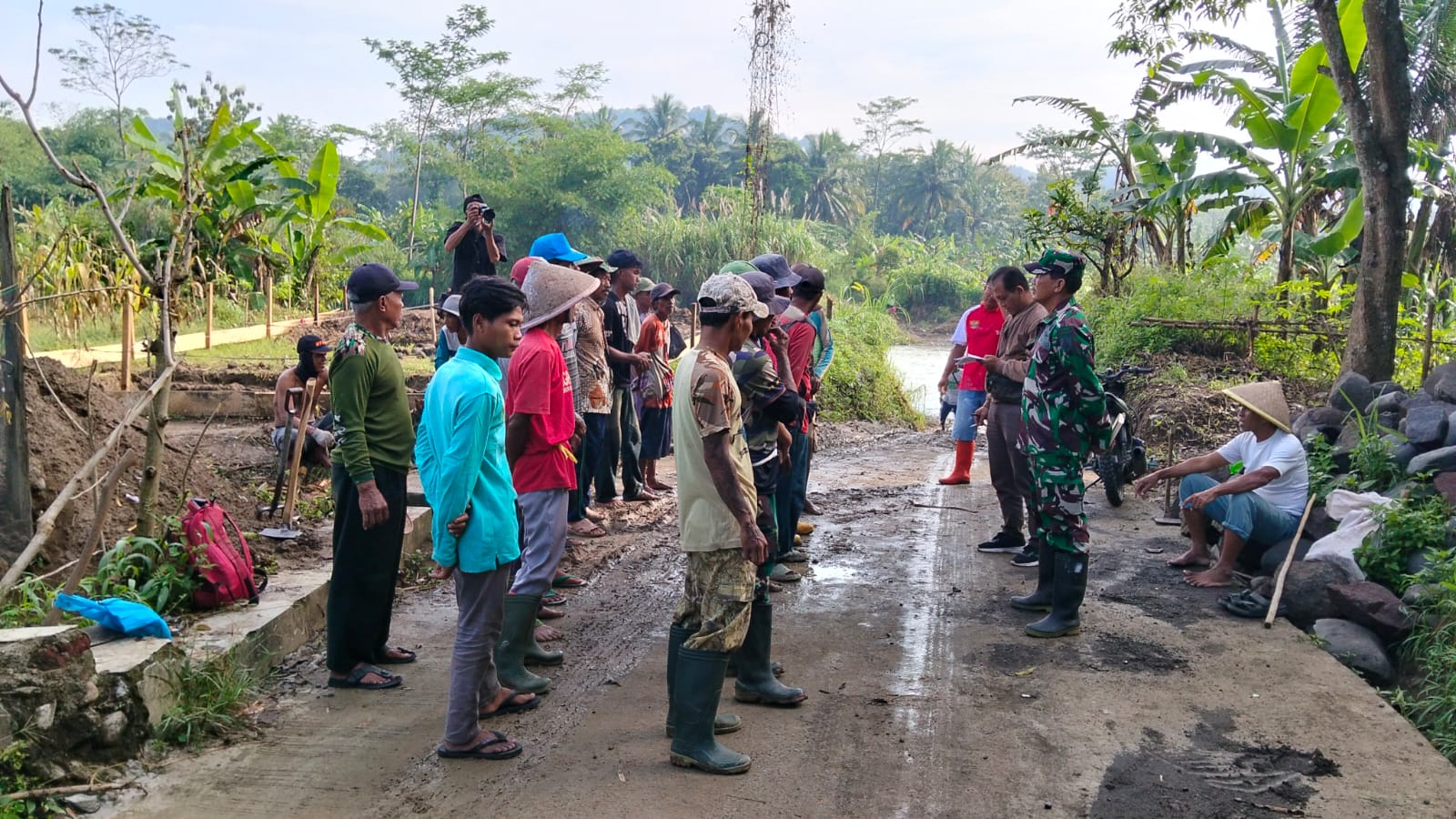 Sebelum pelaksanaan kegiatan dimulai, Babinsa Desa Bangbayang, Pelda Aris, mengumpulkan seluruh personel yang terdiri dari unsur TNI, pemerintah desa, serta masyarakat untuk memberikan arahan. Pengarahan tersebut bertujuan untuk memastikan setiap tahapan pekerjaan berjalan sesuai rencana, serta mengutamakan faktor keselamatan dan kekompakan di lapangan.