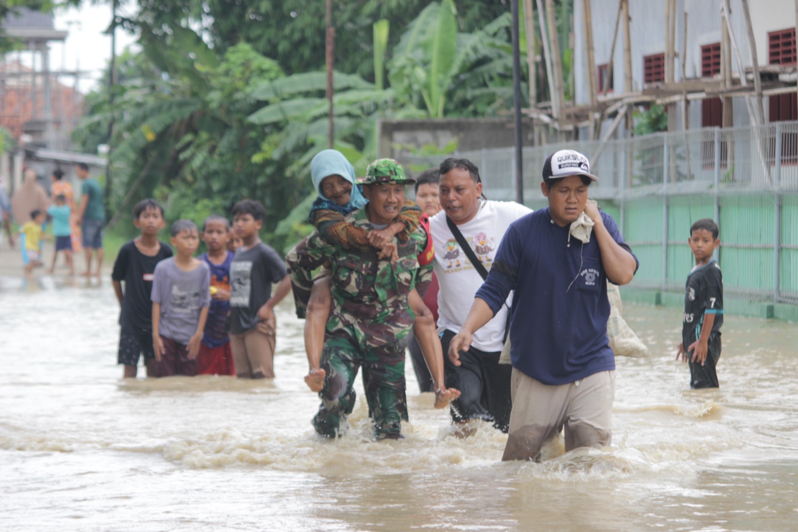 “Kami sudah menghimbau kepada masyarakat di sini supaya selama rumahnya tergenang air agar mengungsi ke rumah keluarga terdekat yang tidak terdampak dan mengamankan barang berharganya ,” ungkap serma Wahyu saat ditemui dilokasi.