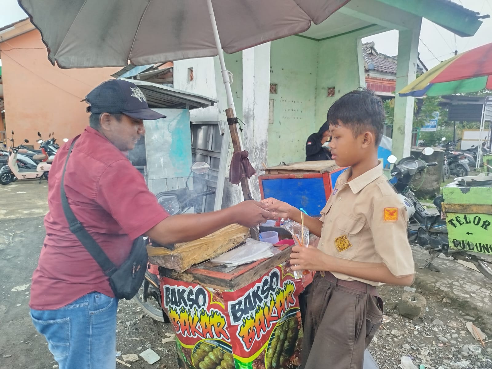 BREBES – Menjelang pembukaan program TNI Manunggal Membangun Desa (TMMD) Reguler ke-127 Kodim 0713/Brebes, geliat ekonomi mulai dirasakan oleh para pedagang kecil. Salah satunya adalah Mashudi (35), pedagang bakso bakar asal Desa Kubangjati, Kecamatan Ketanggungan, yang rela “jemput bola” mengadu nasib di lokasi sasaran TMMD, Desa Cikuya, Sabtu (7/2/2026).