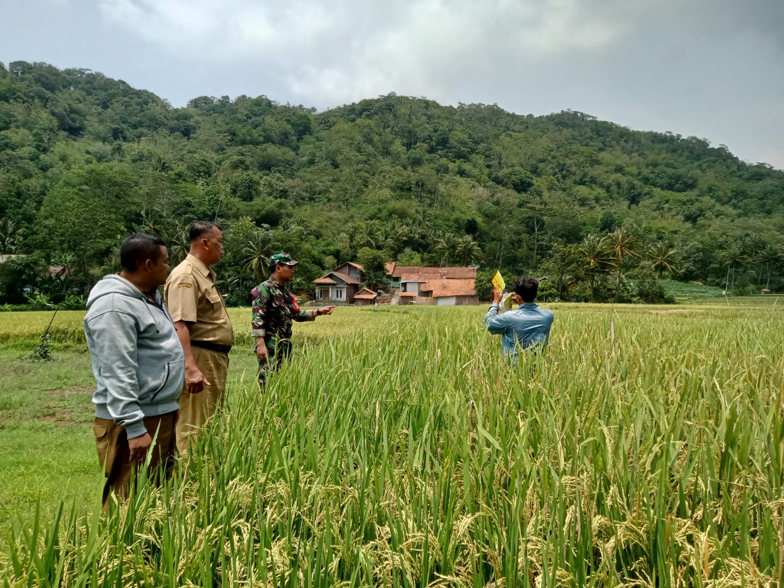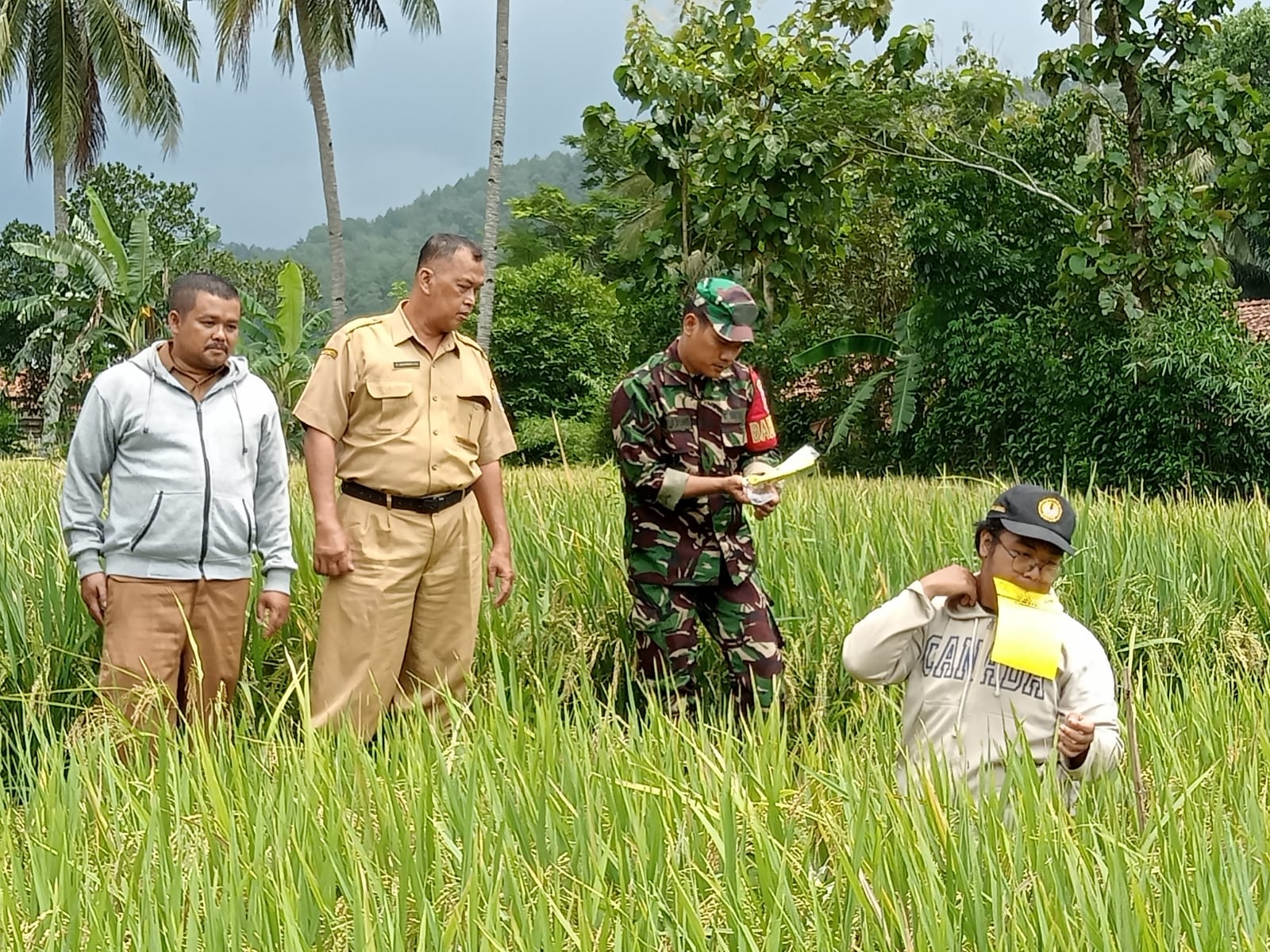 Brebes – Babinsa Koramil 11/Paguyangan Kodim 0713/Brebes Serda Sultoni melaksanakan pendampingan Penelitian Pertanian oleh Mahasiswa Unsoed Purwokerto di lahan Sawah Padi Protani Desa Pakujati Kecamatan Paguyangan Kabupaten Brebes. Selasa (12/11/2024)