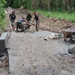 BREBES – Personel Kodim 0713/Brebes beserta warga masyarakat melakukan pengecoran jalan di