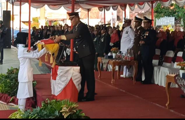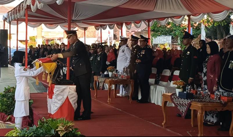 Bertindak Sebagai Komandan Upacara, AKP Ibnu Setiadi, S.H., M.H. dari Polres Brebes, Perwira Upacara AKP Prapto, SH Kapolsek Brebes, Komandan Paskibraka Letda Arm Sukirno Danramil 10 Sirampog.