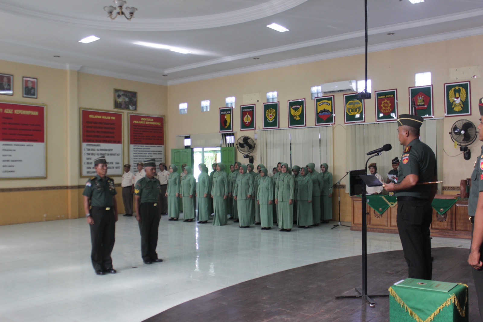 Upacara tersebut dipimpin langsung oleh Komandan Kodim 0713/Brebes Letkol Inf Sapto Broto, S.E., M.Si. dan dihadiri oleh seluruh prajurit, PNS, dan anggota Persit Kartika Chandra Kirana Cabang XXIII Dim 0713/Brebes. Untuk anggota Kodim 0713/Brebes yang Purnatugas yaitu Peltu Abdul Kholik (Babinsa Koramil 03/Wanasari) dan Serma Muhammad Abdul Aziz (Babinsa Koramil 12/Bantarkawung).