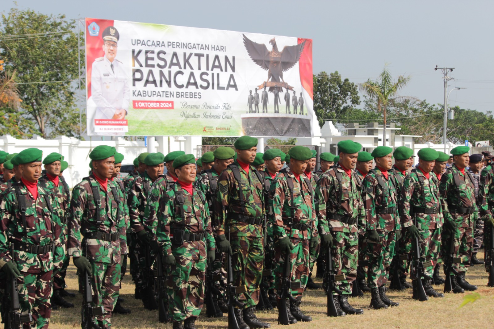 Brebes – Pemerintah Kabupaten (Pemkab) Brebes memperingati Hari Kesaktian Pancasila berlangsung di halaman Kantor Pelayanan Terpadu (KPT) Kabupaten Brebes jalan Proklamasi No. 78 Pasarbatang, Brebes, Jawa Tengah. Selasa (01/10/2024).