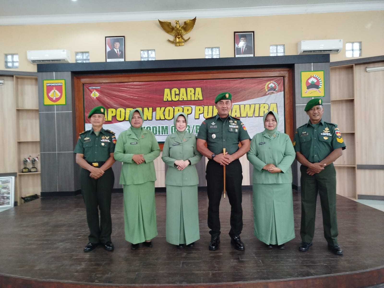 “Wisuda Purna Wira di lingkungan Kodim 0713/Brebes dengan tradisi pedang pora yaitu melepas Letda Chb (Har) Diono Pj. Danramil 12/Bantarkawung dan Serma Wahyu Widiyarto Babinsa Koramil 02/Jatibarang yang saat ini memasuki pensiun,” kata Dandim.