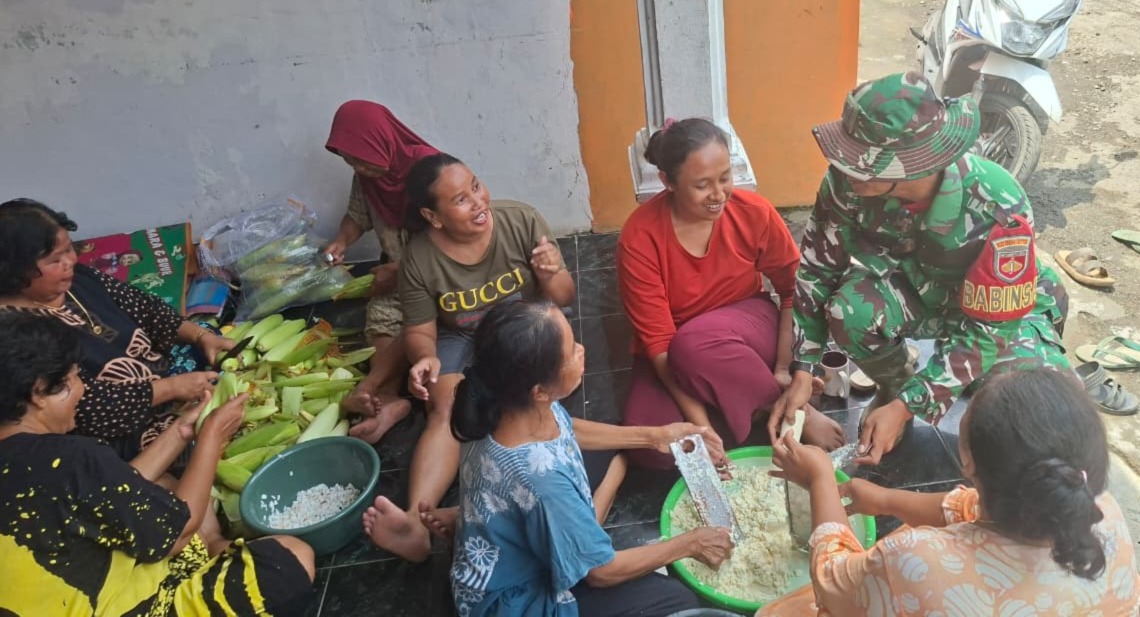 Hangatnya Kebersamaan, Babinsa Cikuya “Diserbu” Ibu-Ibu Pembuat Misro