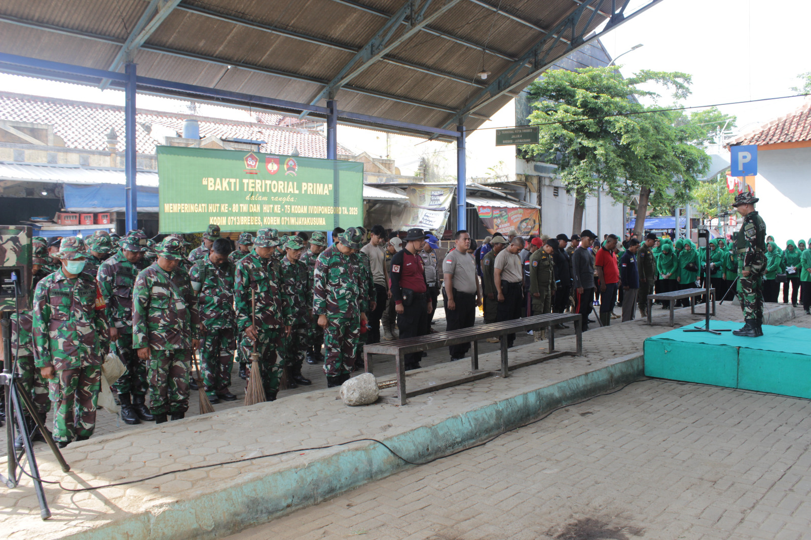 Kegiatan ini melibatkan berbagai elemen masyarakat, mulai dari TNI, Polri, Satpol PP, Dishub, Dinas Lingkungan Hidup, Kokam, FKPPI, Senkom, PWI LS Breebs, Persit Kartika Chandra Kirana Cabang XXIII Dim 0713 Koorcab Rem 071 PD IV/Diponegoro dan Pelajar, hingga warga pasar. Sinergi ini selaras dengan tema peringatan HUT TNI ke-80 : “TNI Prima, TNI – Rakyat, Indonesia Maju.”