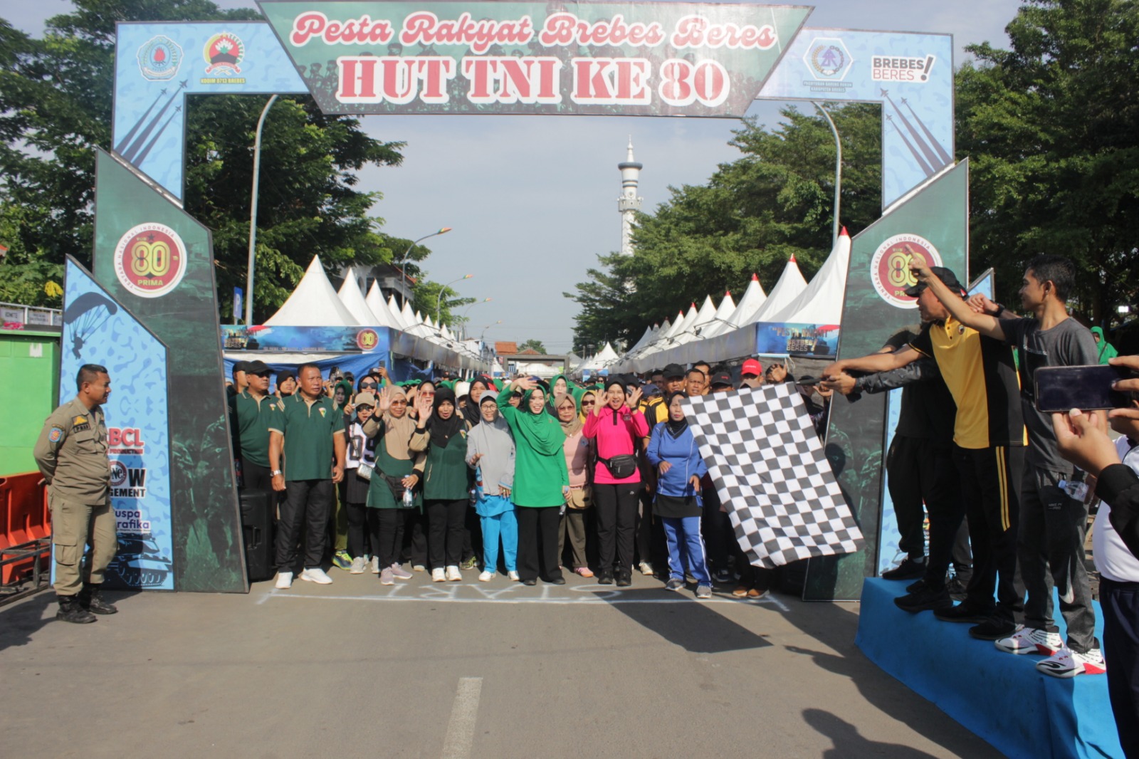 Komandan Kodim 0713/Brebes Letkol Inf Sapto Broto, didampingi Bupati Brebes Hj. Paramitha Widya Kusuma serta jajaran Forkopimda melepas peserta dengan pengibasan bendera start.