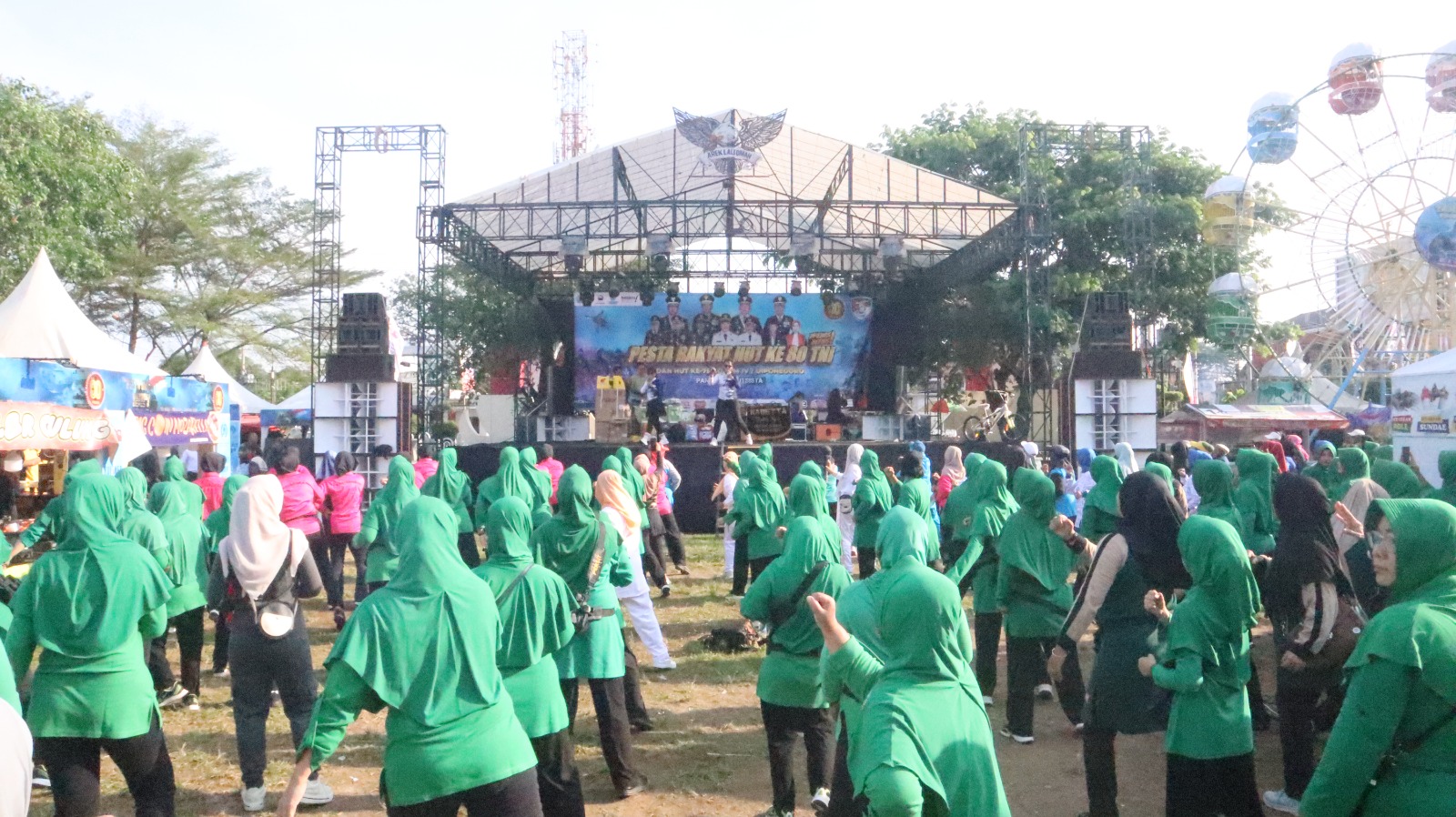 Brebes – Ratusan peserta Jalan Sehat dan Senam bersama rangkaian Pesta Rakyat dalam rangka memperingati HUT ke-80 TNI dan HUT ke-75 Kodam IV/Diponegoro, memadati Alun-Alun Kabupaten Brebes, Sabtu(04/10/2025)