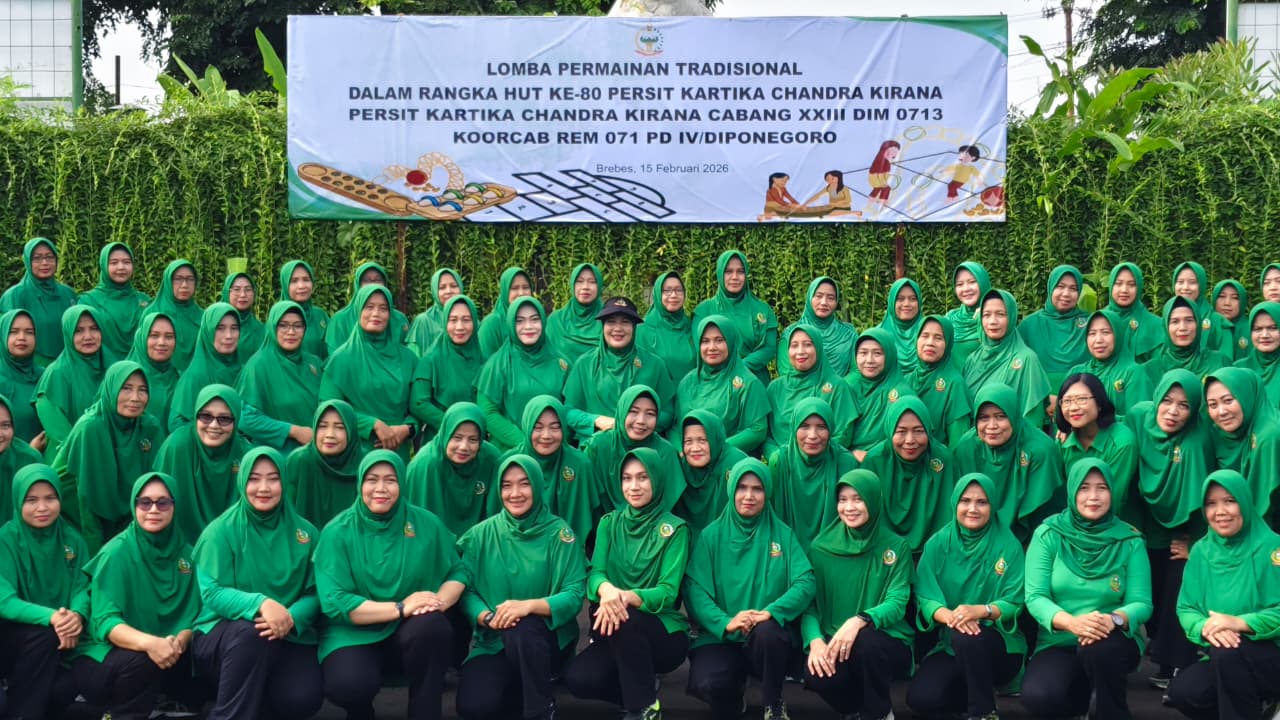 BREBES – Dalam rangka memperingati Hari Ulang Tahun (HUT) ke-80 Persit Kartika Chandra Kirana, Persit KCK Cabang XXIII Dim 0713 Brebes, menggelar kegiatan olahraga bersama dan lomba permainan tradisional yang diikuti ibu-ibu Persit bersama anak-anak, bertempat di Makodim 0713/Brebes, Minggu (15/2/2026).