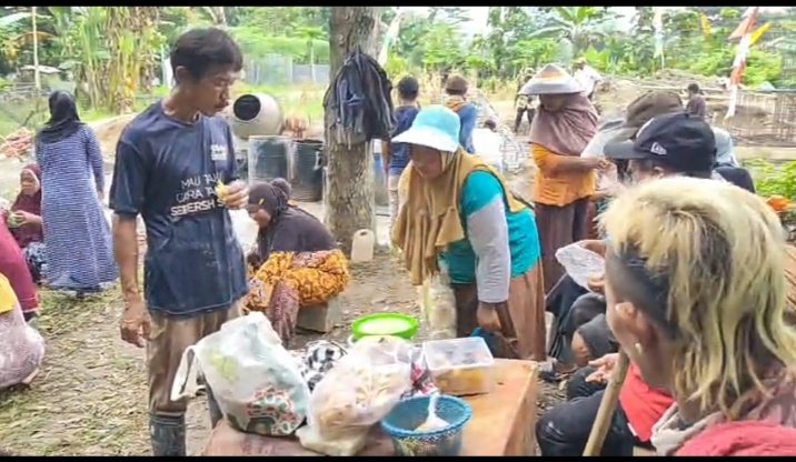 Di sela-sela waktu istirahat, para ibu terlihat duduk bersama di sekitar lokasi pekerjaan. Dengan penuh keakraban, mereka berbagi cerita, tertawa, dan menikmati makanan seadanya yang dibawa dari rumah. Meskipun sederhana, suasana tersebut mencerminkan semangat kebersamaan dan kekeluargaan yang kuat.