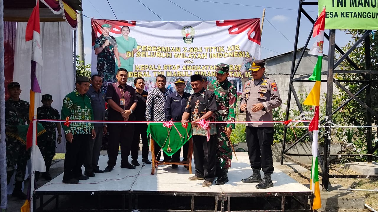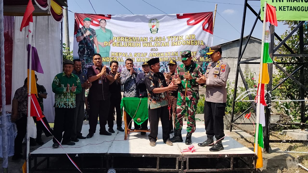 Brebes – Komandan Kodim 0713 Brebes, Letkol Inf Sapto Broto, S.E., M.Si bersama Forkompinda Brebes dan masyarakat mengikuti acara Vicon Peresmian Sumber Air Bersih Secara Serentak oleh Kepala Staf Angkatan Darat Jenderal TNI Maruli Simanjuntak, M.Sc di Dukuh Prapag, Desa Ketanggungan, Kecamatan Ketanggjngan, Brebes, Jawa Tengah. Selasa (30/07/2024).