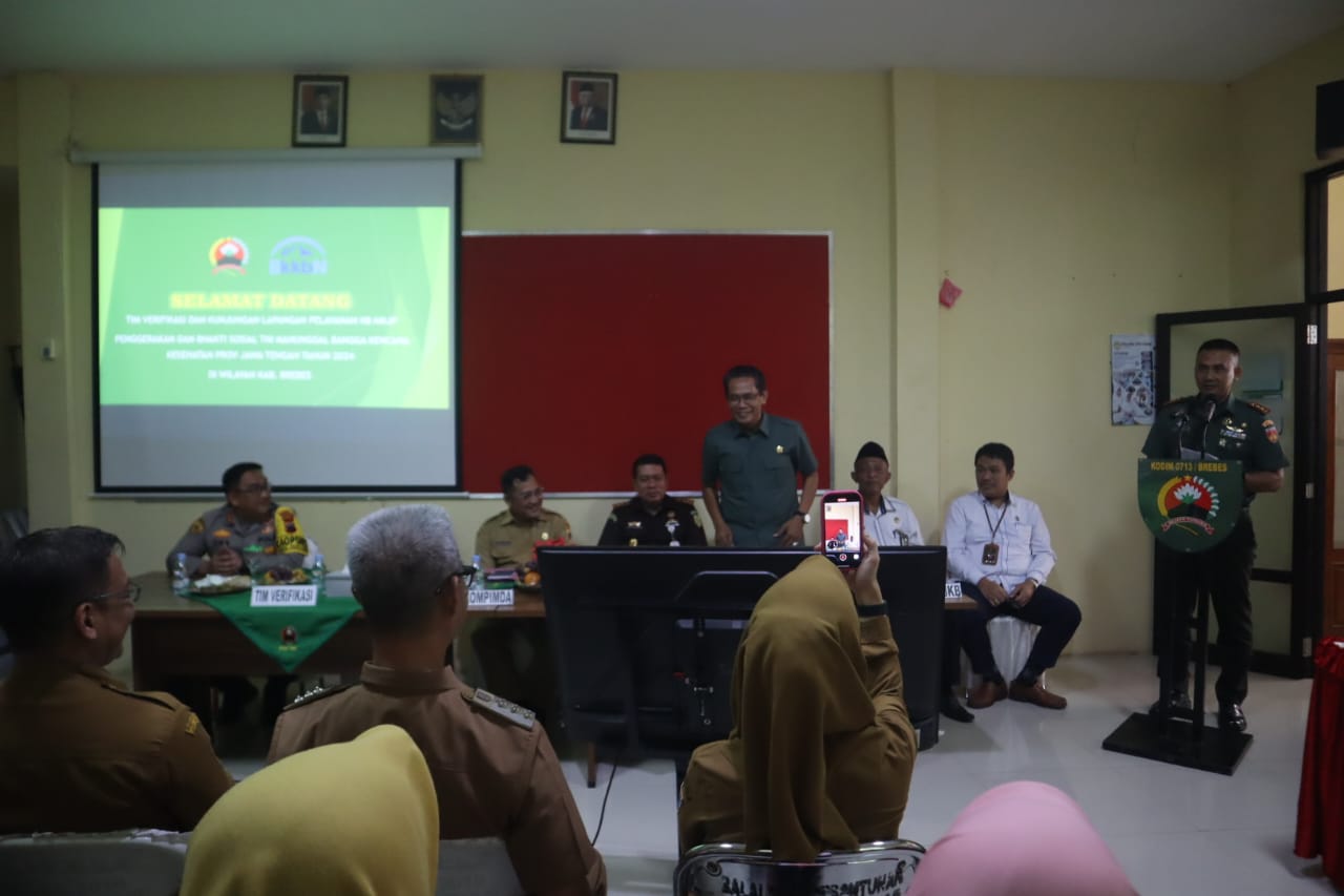 Brebes – Kodim 0713 Brebes, Korem 071 Wijayakusuma melaksnakan Pencanangan TNI Manunggal Bangsa Kencana Kesehatan Tahun 2024 dan menerima Tim Verifikasi sekaligus kunjungan lapangan dalam rangka pelayanan KB MJKP pergerakan bhakti sosial TNI Manunggal Bangsa Kencana Kesehatan Tingkat Propinsi Jawa Tengah tahun 2024 di Aula Puskesmas Sidamulya, Kecamatan Wanasari, Kabupaten Brebes, Jawa Tengah. Senin (09/09/2024).