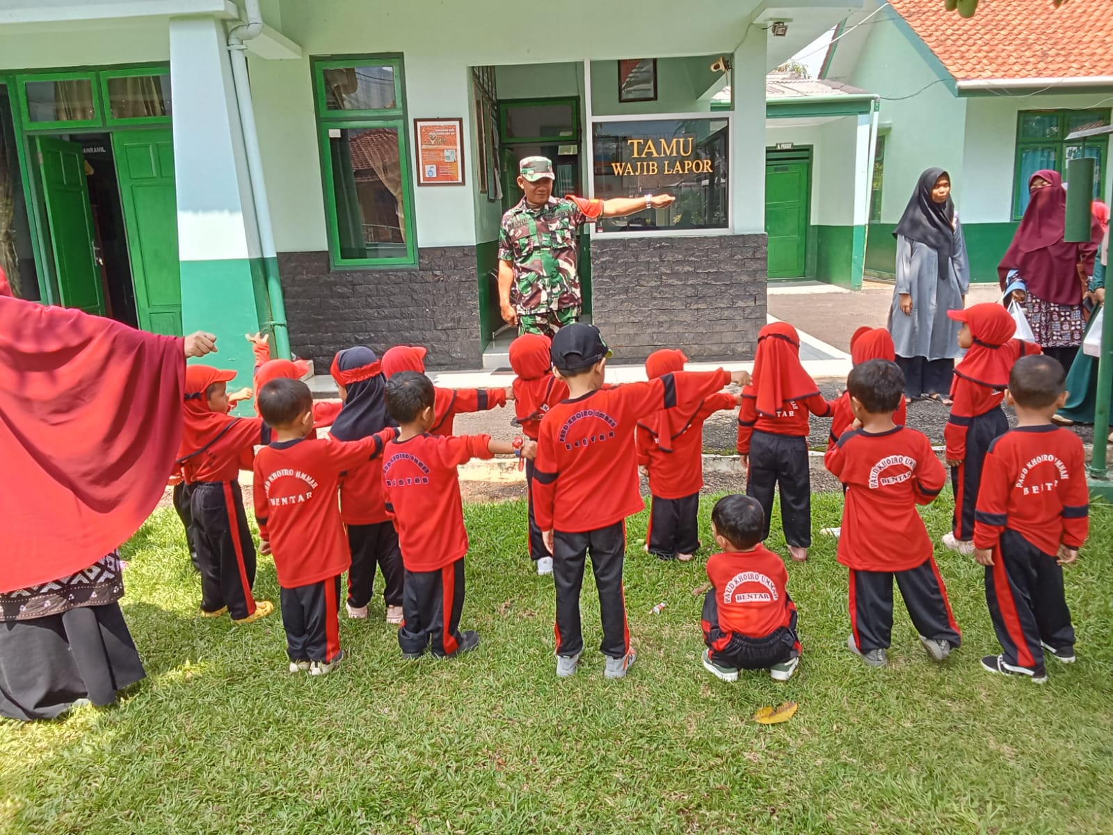 Dikatatan Serka Tarto bahwa kegiatan tersebut dipimpin oelh Kepala Sekolah PAUD Khoiru Ummah Euis Musyarofah, S.Pd didampingi guru pendamping.