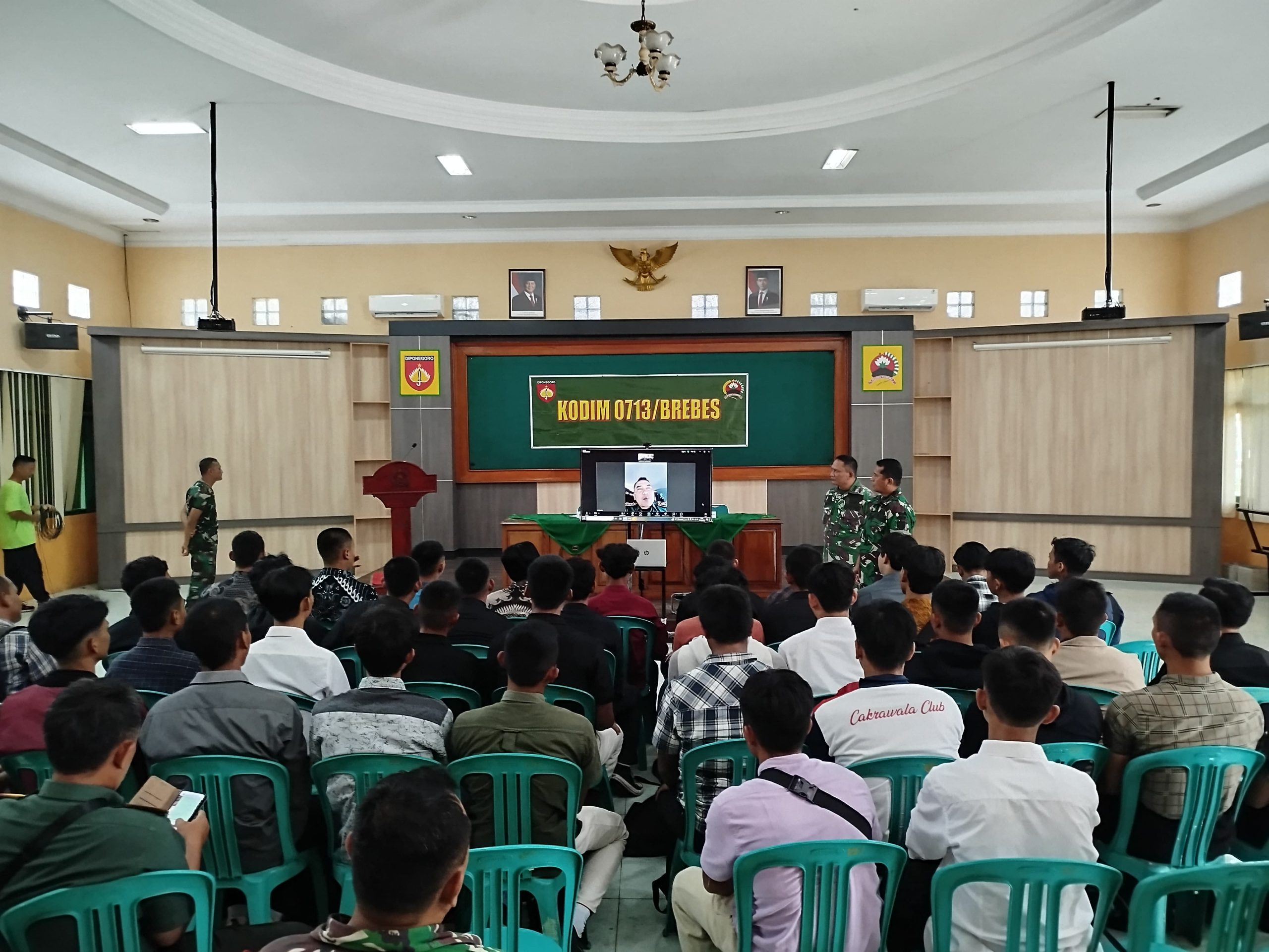 BREBES – Melalui Saluran Video Confrence (Vicon) Komandan Kodim 0713/Brebes Letkol Inf Sapto Broto, S.E., M.Si. memberikan pengarahan dan motivasi kepada pemuda yang akan mengikuti tes untuk menjadi Calon Siswa (Casis) Tamtama PK TNI AD Gel I TA. 2025, bertempat di aula Makodim 0713/Brebes Jl. Kaumanpasar Kecamatan Brebes Kabupaten Brebes, Selasa (04/02/2025).