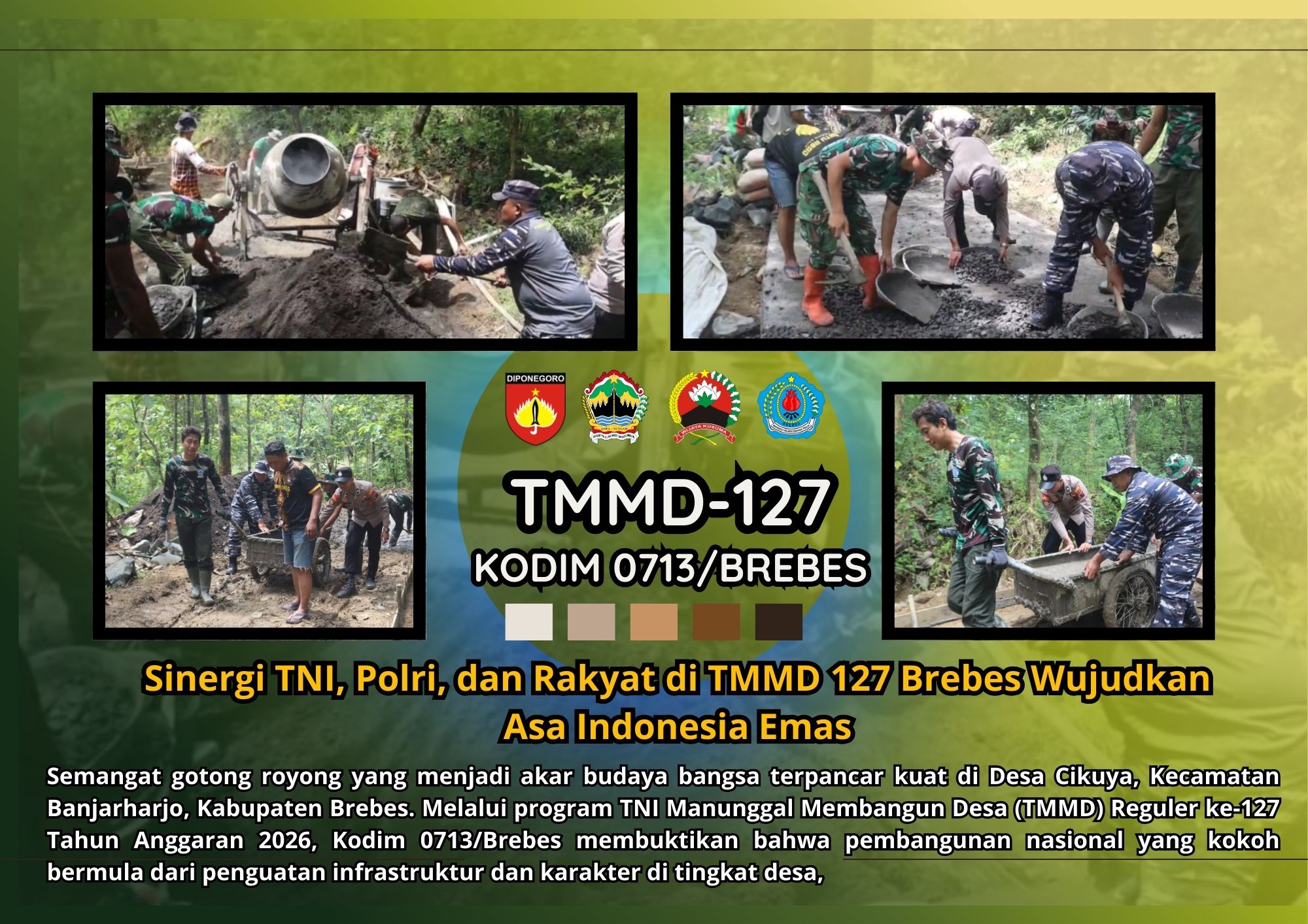 BREBES – Semangat gotong royong yang menjadi akar budaya bangsa terpancar kuat di Desa Cikuya, Kecamatan Banjarharjo, Kabupaten Brebes. Melalui program TNI Manunggal Membangun Desa (TMMD) Reguler ke-127 Tahun Anggaran 2026, Kodim 0713/Brebes membuktikan bahwa pembangunan nasional yang kokoh bermula dari penguatan infrastruktur dan karakter di tingkat desa, Rabu (04/03/2026).