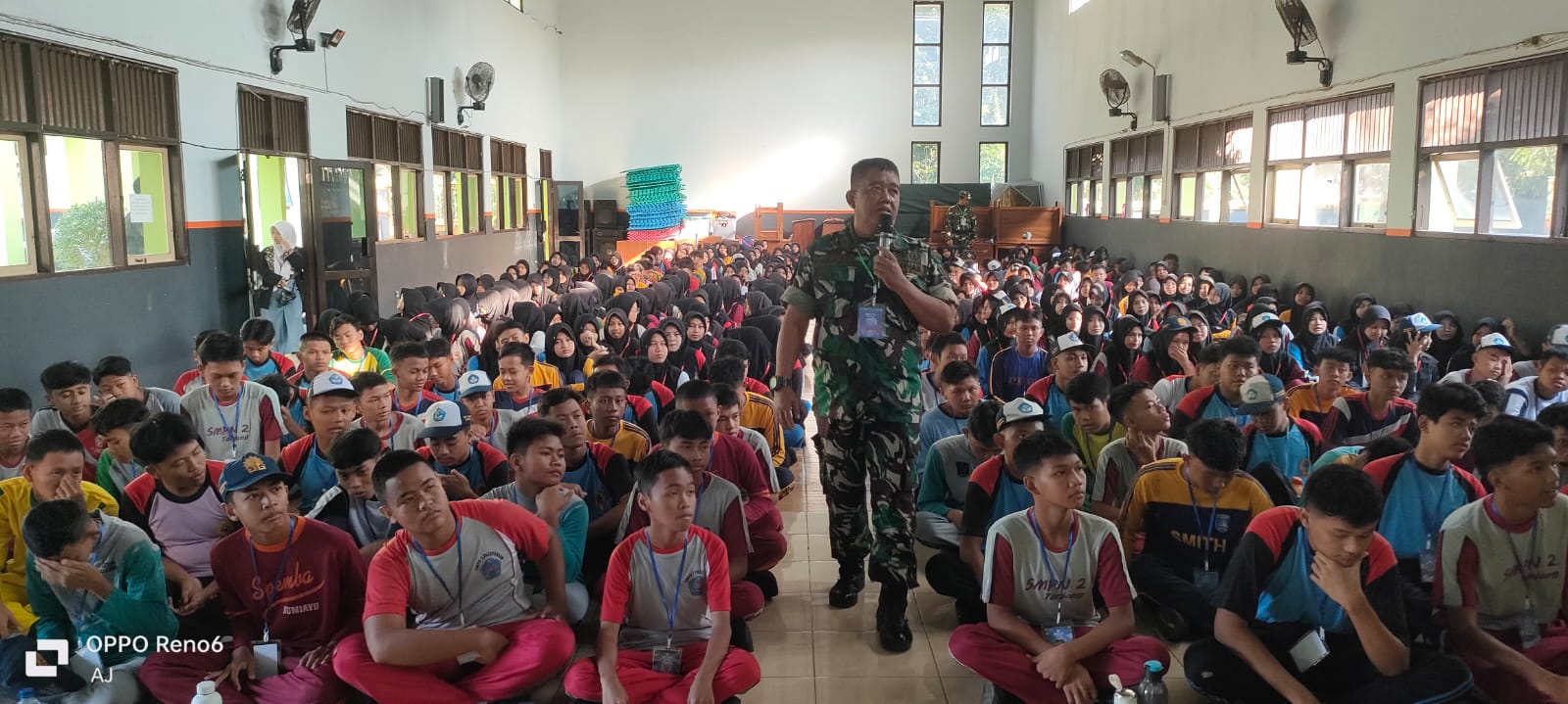 Brebes – Bati Tuud Koramil 08 Bumiayu, kodim 0713 Brebes, Pelda Marji memberikan pembekalan materi Wawasan Kebangsaan pada kegiatan masa pengenalan lingkungan sekolah (MPLS) SMA Negeri 1 Bumiayu Tahun Pelajaran 2024/2025 bertempat di Aula SMA, Bumiayu, Brebes, Jawa Tengah. Selasa, (23/07/2024).
