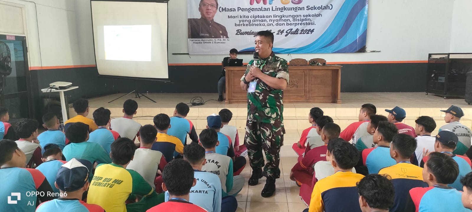 Upaya TNI melalui Koramil 08 Bumiayu ini, untuk menciptakan situasi yang aman dan kondusif di wilayah dan menjalin hubungan kemitraan bersama pihak Sekolah, Koramil juga memberikan pembekalan kepada peserta didik baru SMA Negeri 1 Bumiayu.