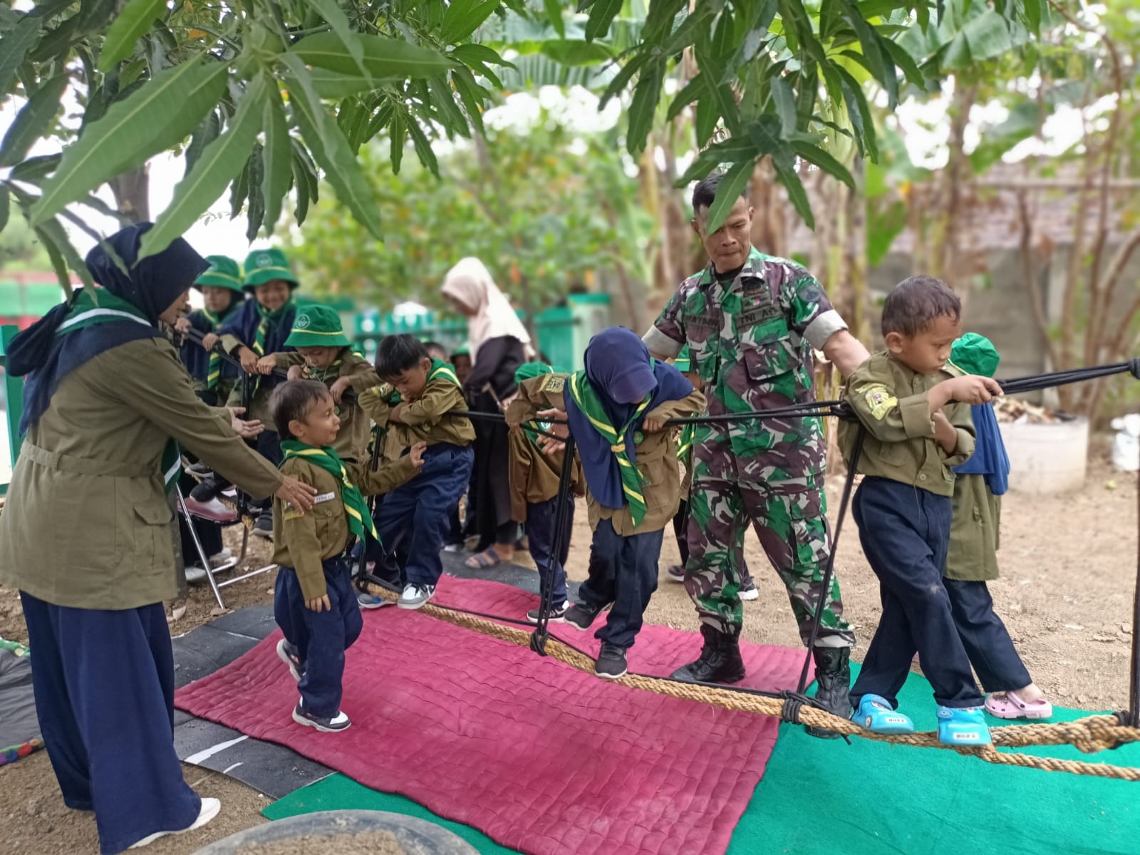 “ Anak- anak sangat ceria dan antusias mengikuti kegiatan tersebut. Mereka jadi tahu fungsi dan kelengkapan seragam TNI,” ungkapnya.