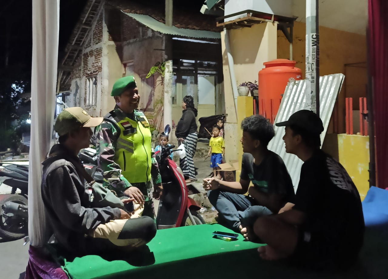 Brebes – Guna mewujudkan wilayah yang aman dan kondusif, Babinsa Koramil 08/Bumiayu, Kodim 0713/Brebes Pelda Bambang P. melaksanakan patroli malam hari sekaligus memberikan himbauan Kamtibmas kepada pemuda dan warga masyarakat wilayah binaan Desa Bumiayu, Kecamatan Bumiayu, Brebes, Jawa Tengah. Senin malam (21/10/2024).