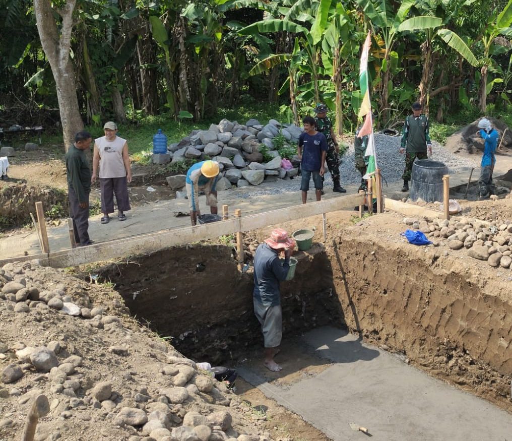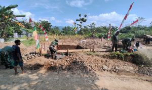 Kegiatan berlangsung dengan penuh semangat gotong royong, mencerminkan sinergi yang kuat antara TNI dan masyarakat. Kolaborasi ini menjadi salah satu faktor utama dalam mempercepat proses pembangunan sekaligus menjaga kualitas pekerjaan di lapangan.