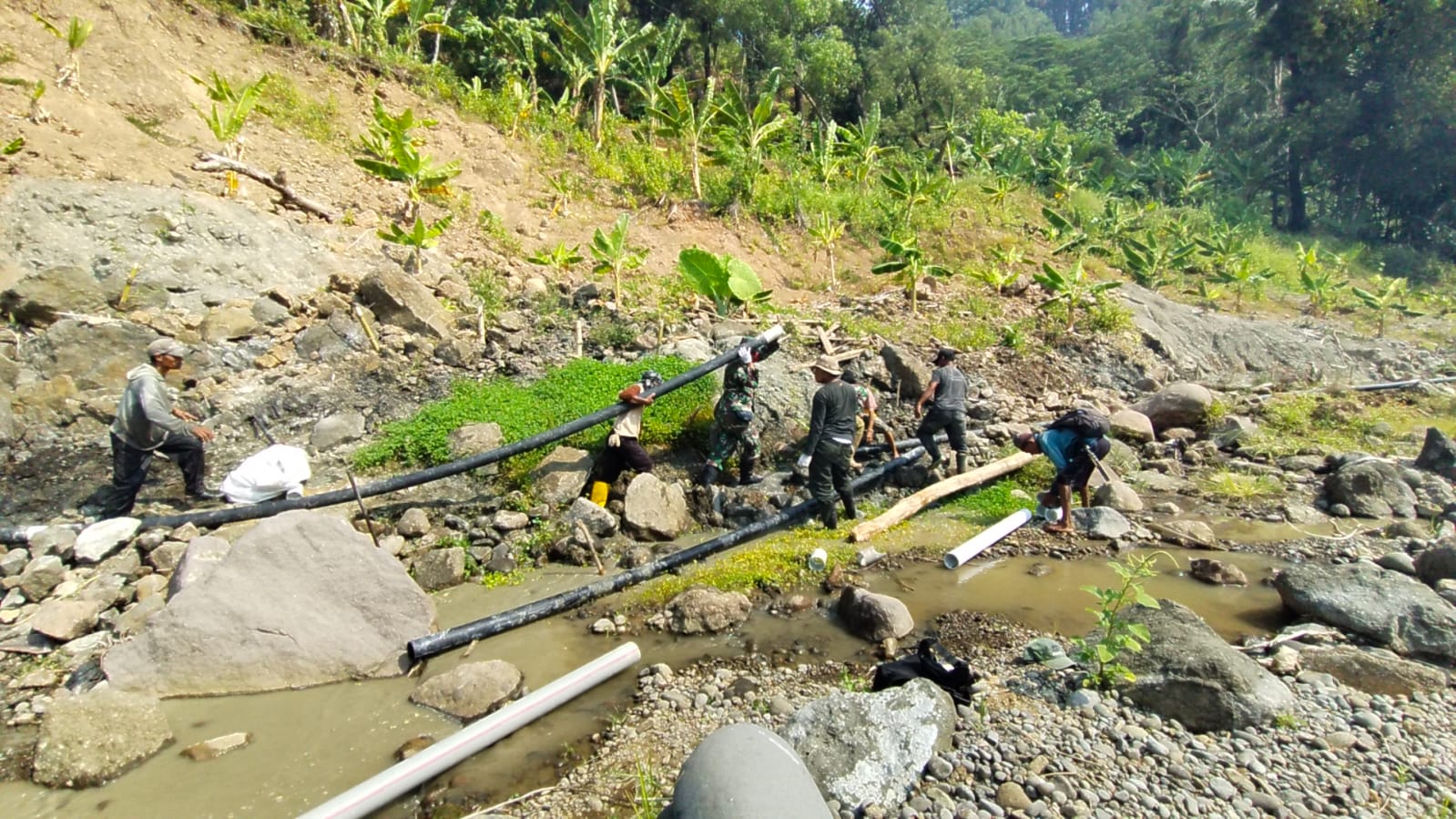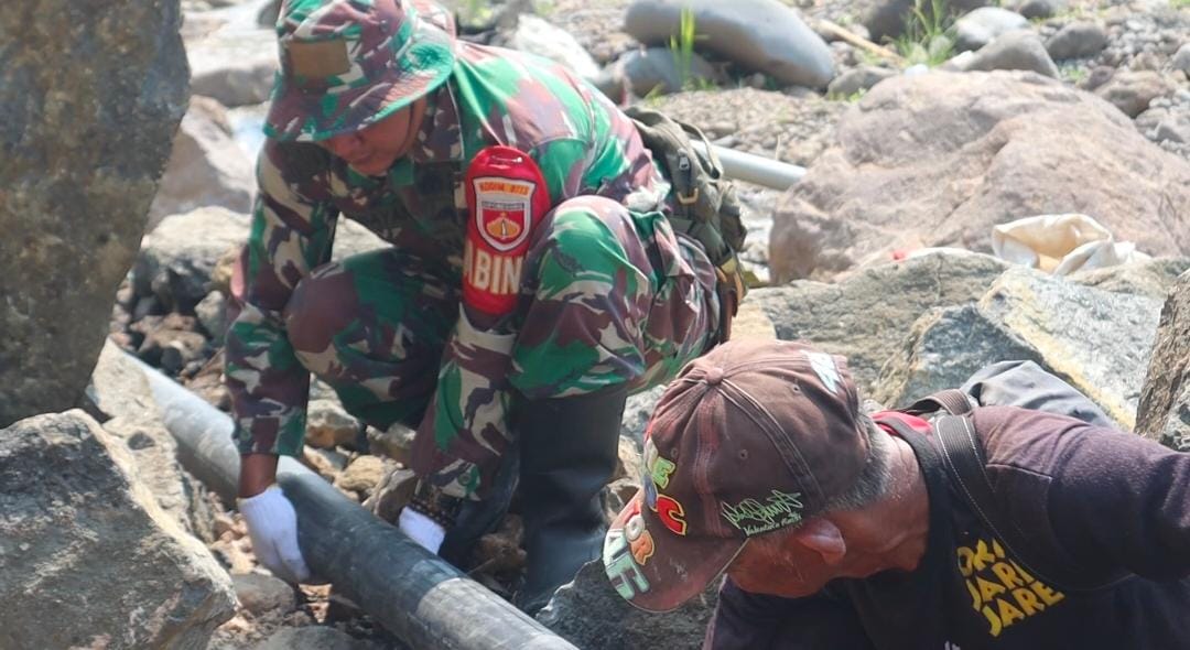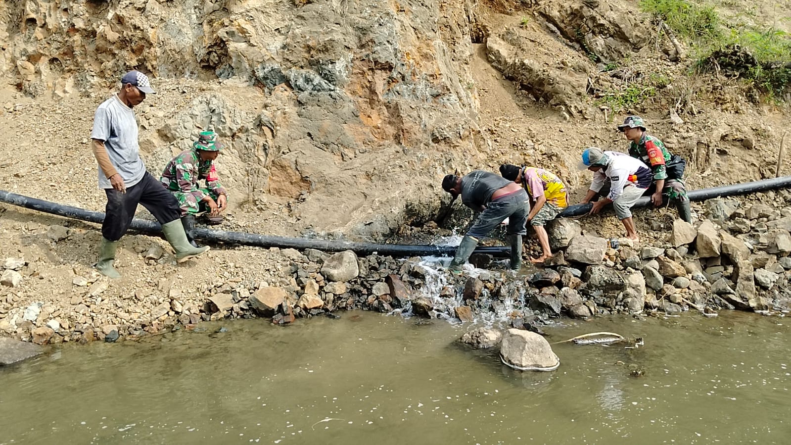 “Hasil yang dicapai hingga saat ini yang memasuki hari ketiga, Bak Induk/utama 49 %, Bak pembagi 78 % dan Bak sumber air Bendungan Petahunan 75 % serta sudah melaksanakan Pemasangan Pipa yang sudah mencapai 77 %, harapannya 3 hari kedepan sudah bisa mengairi sawah”. Imbuh Dandim.