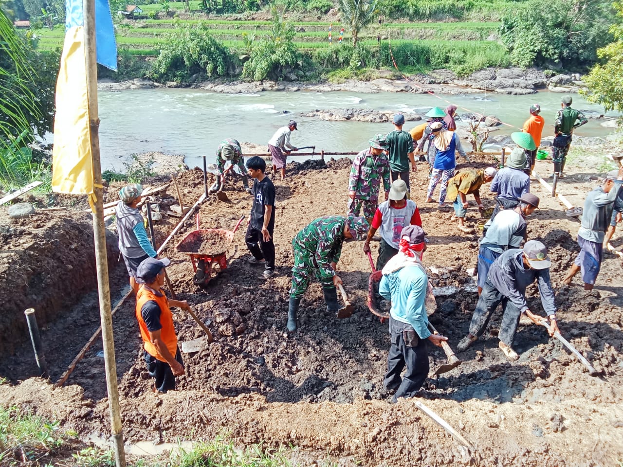 Kegiatan pembangunan dilaksanakan secara gotong royong dengan melibatkan berbagai unsur, mulai dari TNI, pemerintah desa (Pemdes), hingga masyarakat setempat. Sinergi ini menjadi kunci utama dalam mempercepat proses pembangunan sekaligus menjaga kualitas pekerjaan di lapangan.