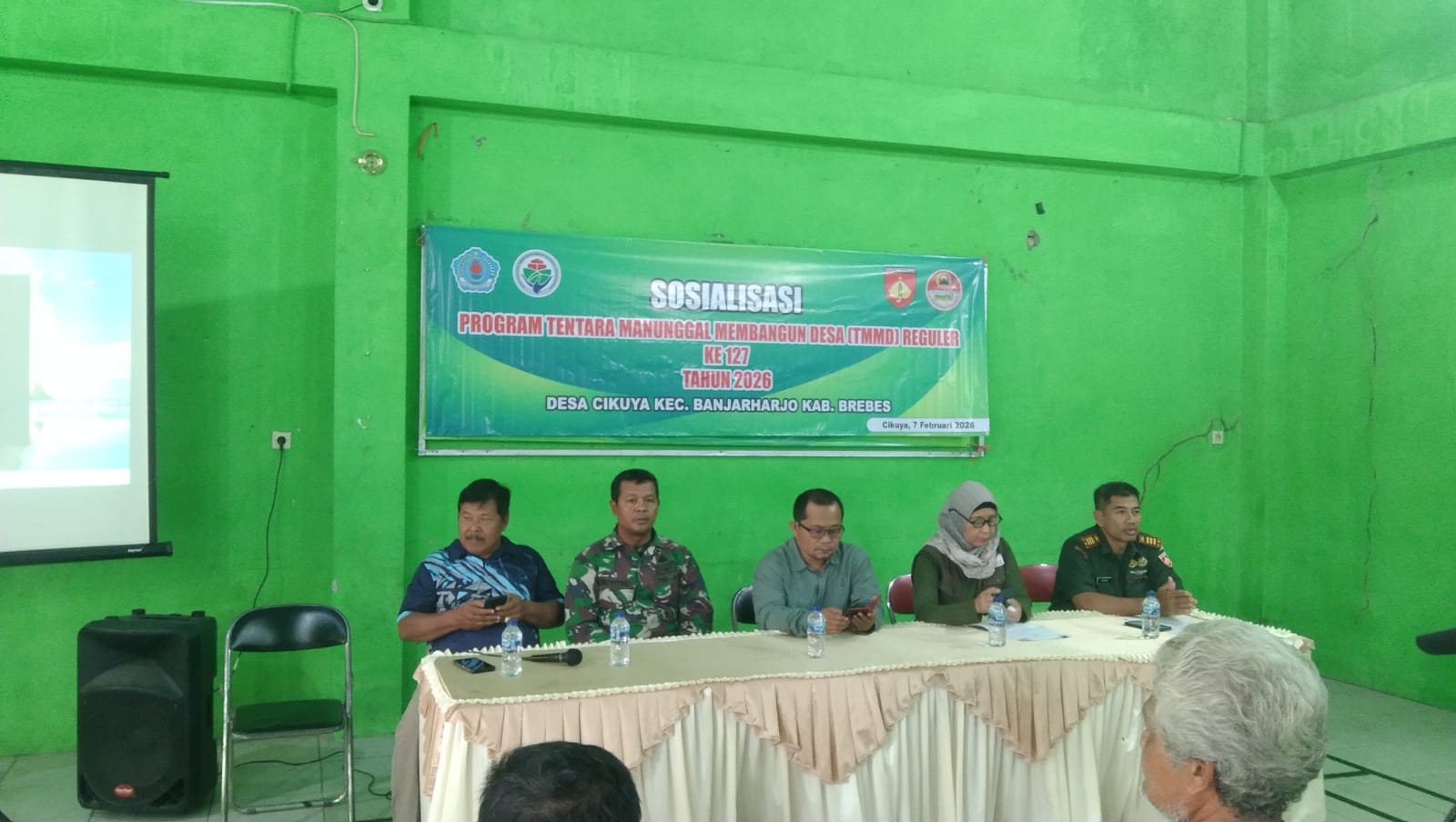 BREBES – Semangat gotong royong kembali membara di Kabupaten Brebes. Menjelang pembukaan TNI Manunggal Membangun Desa (TMMD) Reguler ke-127 Tahun 2026, Kodim 0713/Brebes menggelar Sosialisasi dan Rapat Persiapan di Aula Balai Desa Cikuya, Kecamatan Banjarharjo, Sabtu (7/2/2026).