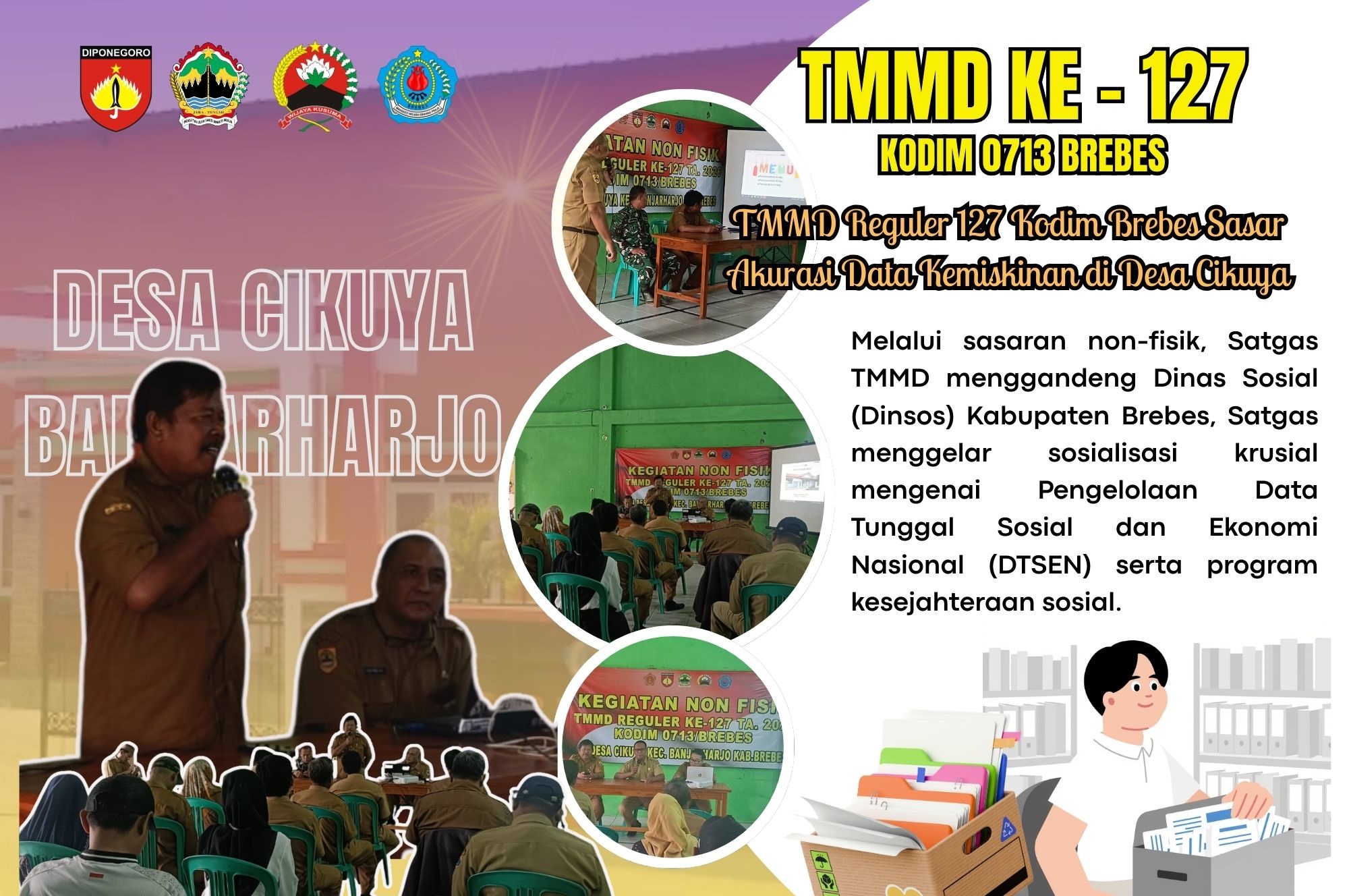 BREBES – Satgas TNI Manunggal Membangun Desa (TMMD) Reguler ke-127 Kodim 0713/Brebes terus memperkuat aspek non-fisik di wilayah sasaran. Kali ini, bekerja sama dengan Dinas Sosial (Dinsos) Kabupaten Brebes, Satgas menggelar sosialisasi krusial mengenai Pengelolaan Data Tunggal Sosial dan Ekonomi Nasional (DTSEN) serta program kesejahteraan sosial, Kamis (26/02/2026).