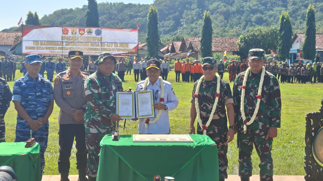 BREBES – Sebuah babak baru bagi akselerasi pembangunan di wilayah Kabupaten Brebes bagian selatan resmi dimulai. Program TNI Manunggal Membangun Desa (TMMD) Reguler ke-127 tahun anggaran 2026 yang dipusatkan di Desa Cikuya, Kecamatan Banjarharjo, dinyatakan selesai dengan capaian sempurna 100 persen. Penutupan program kolosal ini ditandai dengan upacara khidmat yang dipimpin oleh Kapok Sahli Pangdam IV/Diponegoro, Brigjen TNI Abdul Hanis, S.I.P., M.Si., CGRA, mewakili Pangdam IV/Diponegoro, Rabu (11/3/2026).