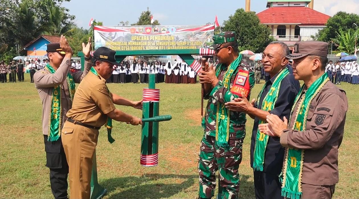 BREBES – TNI Manunggal Membangun Desa (TMMD) Sengkuyung Tahap II Tahun Anggaran 2025 Kodim 0713 Brebes, Korem 071 Wijayakusuma resmi dibuka di Lapangan Sepak Bola Desa Bentar, Kecamatan Salem, Kabupaten Brebes, Selasa (6/5/2025).